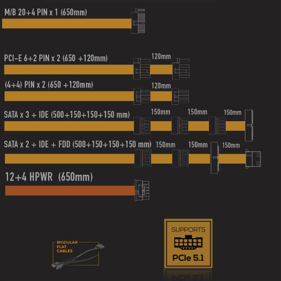| Cable PCI-E 5.1 12+4Pin (Vga) | 1 |